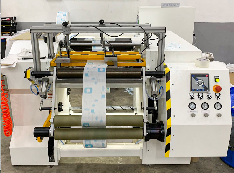 Uudelleenkelaus: Leikattu materiaali kelataan pienemmille hylsyille tai akseleille halutun leveyden kapeampien rullien muodostamiseksi. Kone voidaan varustaa eri määrällä akseleita erilaisten kelausvaatimusten mukaan.
